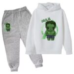 Unleash your little one’s inner superhero with this adorable white and gray hoodie set featuring an adorable chibi Hulk graphic! Designed for comfort and style, this set includes a soft white hoodie with a fun, playful Hulk print and matching gray joggers for a cool, balanced look. Perfect for school, playdates, or just lounging in superhero style!