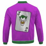 Step into the chaotic world of Gotham with this vibrant Joker-themed bomber jacket! Designed in Joker’s signature purple, this jacket captures the essence of the Clown Prince of Crime with its bold logo and playing card-inspired design on the back. Perfect for fans of DC’s most infamous villain, it’s both stylish and rebellious, letting you make a statement wherever you go.